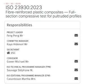 近日,國際標(biāo)準(zhǔn)化組織ISO正式頒布了ISO 23930:2023 《纖維增強(qiáng)塑料復(fù)合材料——拉擠型材全截面壓縮試驗(yàn)方法》(Fibre-reinforced plastic composites — Full-section compressive test for pultruded profiles),這部標(biāo)準(zhǔn)由清華大學(xué)土木工程系馮鵬教授提案并擔(dān)任項目負(fù)責(zé)人(Project Leader),是復(fù)合材料技術(shù)領(lǐng)域首項由我國提案并主導(dǎo)制訂的國際標(biāo)準(zhǔn)項目。