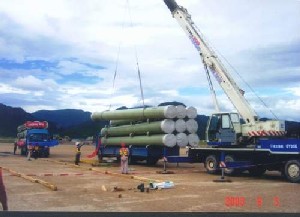 1 中復連眾董事長任桂芳女士、總經理喬光輝先生和CSPC南海項 目的催交經理 Clayton Miles先生在公司門前合影2 生產中的GRP管道3 CSPC南海項目首批GRP管道出廠4 CSPC南海項目首批GRP管道現場卸貨